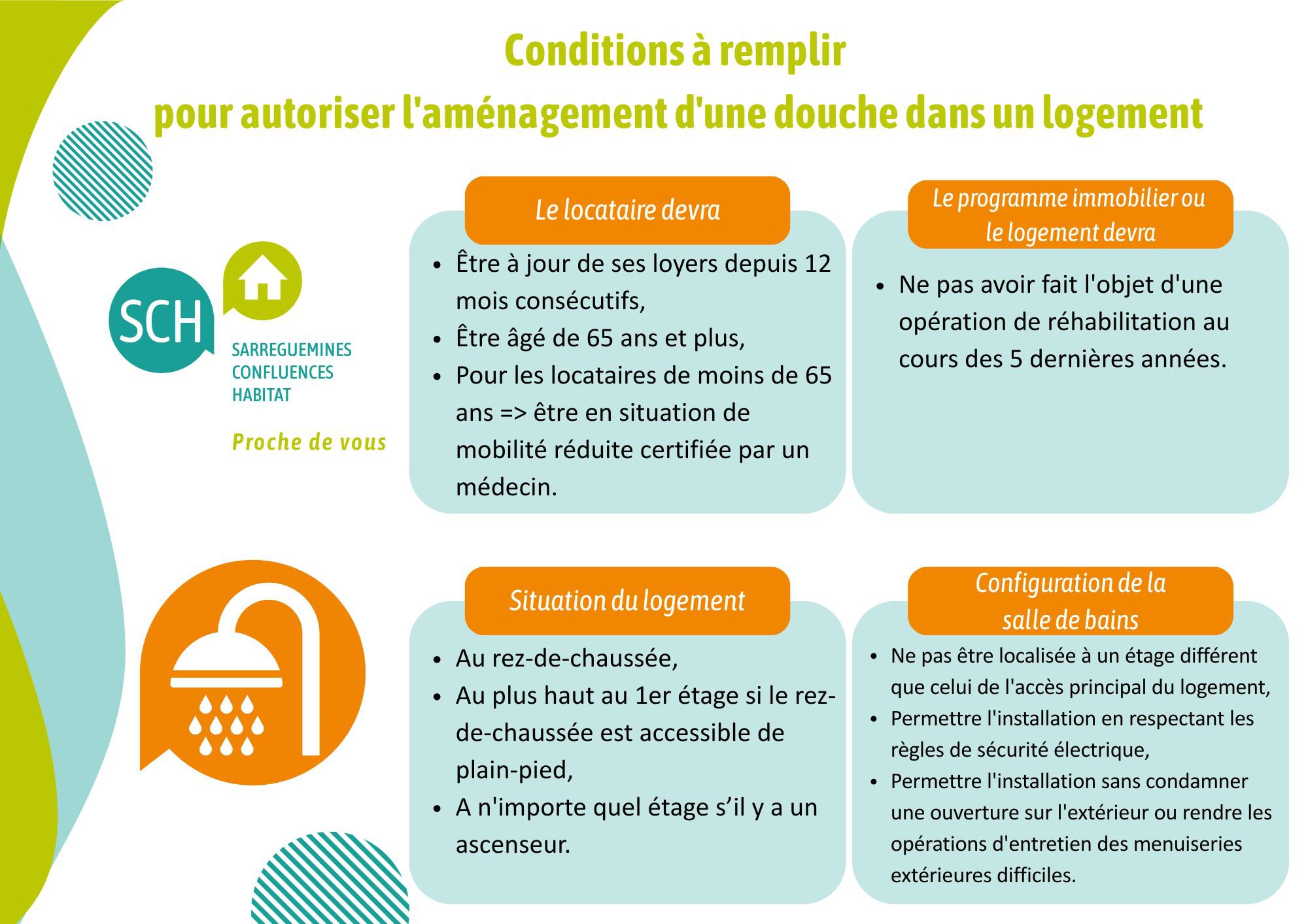 Conditions pour l'aménagement d'une douche